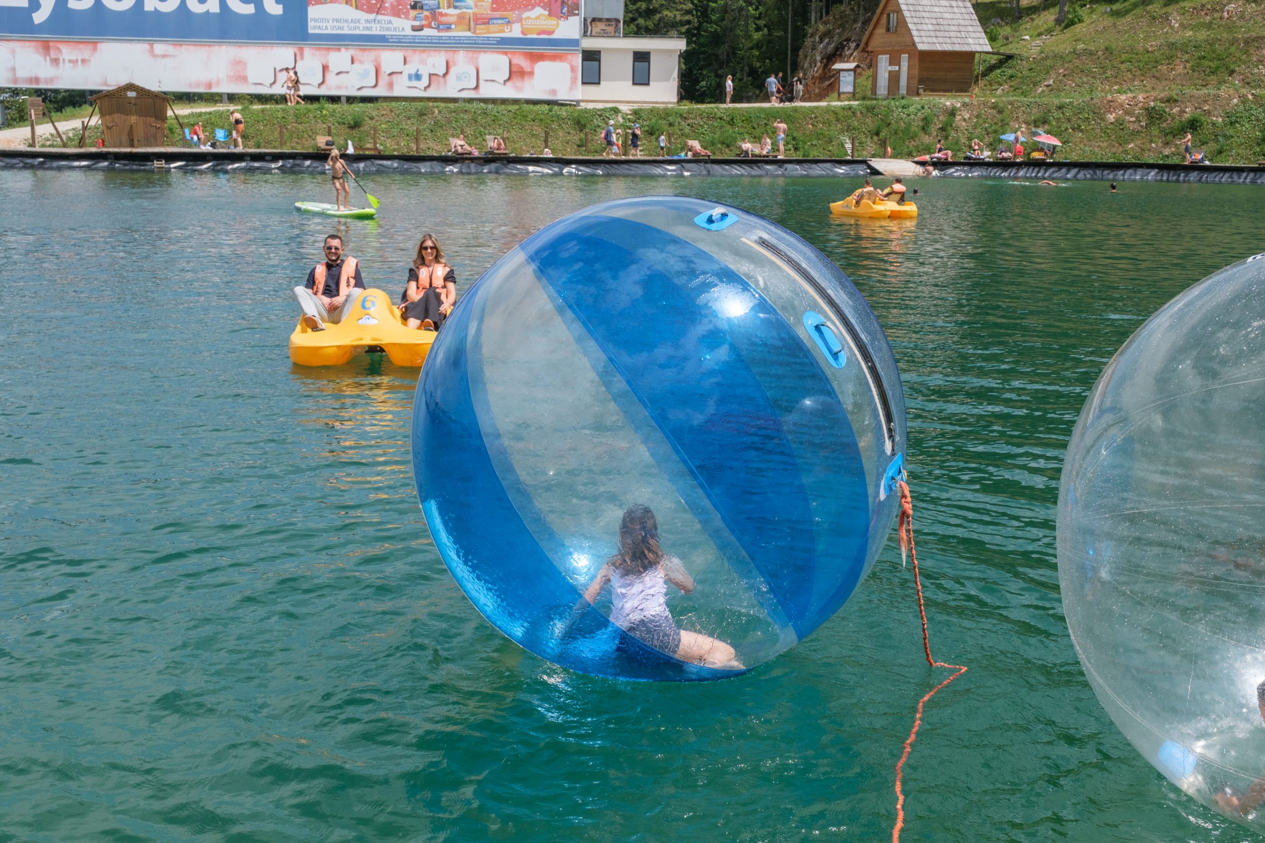 U ponudi je i popularno „hodanje na vodi“ u loptama, a tu je i vožnja zip line-om preko jezera dužine cca 300 metara, kao i vožnja pedalinama.